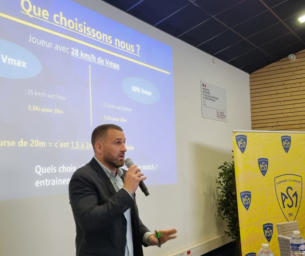 Ange-François Costella, responsable de la performance à l’ASM Clermont Auvergne, a ensuite illustré comment la connaissance fine de son équipe constitue la première étape vers la réussite : suivi GPS des joueurs, analyse des performances, identification des zones clés ou encore mesure des capacités physiques. L’exploitation intelligente des données permet aujourd’hui d’optimiser les entraînements, d’affiner les stratégies et d’éclairer la prise de décision.