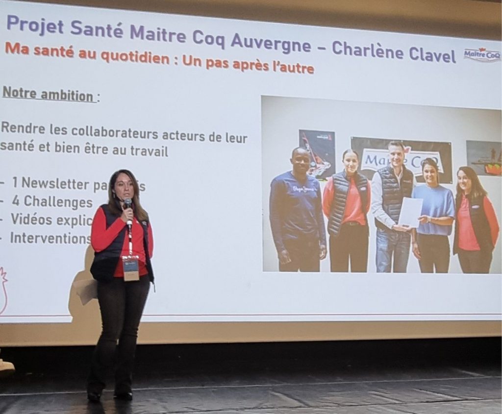 Elisabeth Abart, chargée de ressources humaines à l’entreprise Arrivé Auvergne à St-Germain-des-Fossés, a ainsi exposé le projet santé mis en place dans l’entreprise, en collaboration avec Charlène Clavel, triathlète vichyssoise professionnelle. 1 newsletter mensuelle, des challenges, des vidéos explicatives et des interventions sur site portent l’ambition de rendre les employés de l’entreprise acteurs de leur santé et bien-être au travail, en les incitant à la pratique sportive.