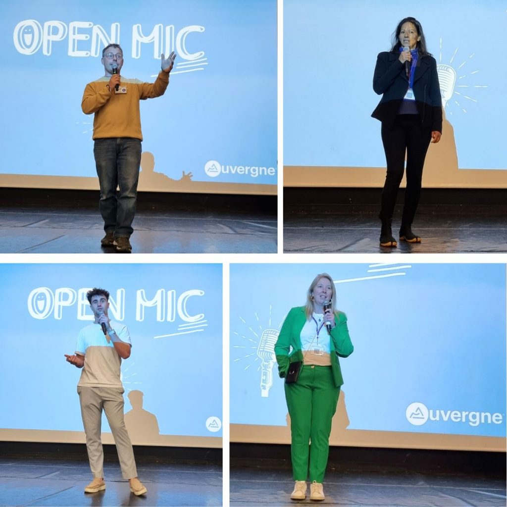Un open micro a permis à plusieurs porteurs de projets ou jeunes créateurs d’entreprises présents dans la salle de s’exprimer, en improvisant une présentation de leur personne et entreprise ou projet. Ursula Orduna-Aubry (ateliers de yoga), Jeremy Fontaine (agence de communication Vision Plus), Virginie Martinet (services et conseils qualité de vie conditions de travail) et Gael Hemet de l’Atelier de Malauzat (atelier de loisirs numériques et technologiques) ont ainsi pu présenter rapidement leur activité.