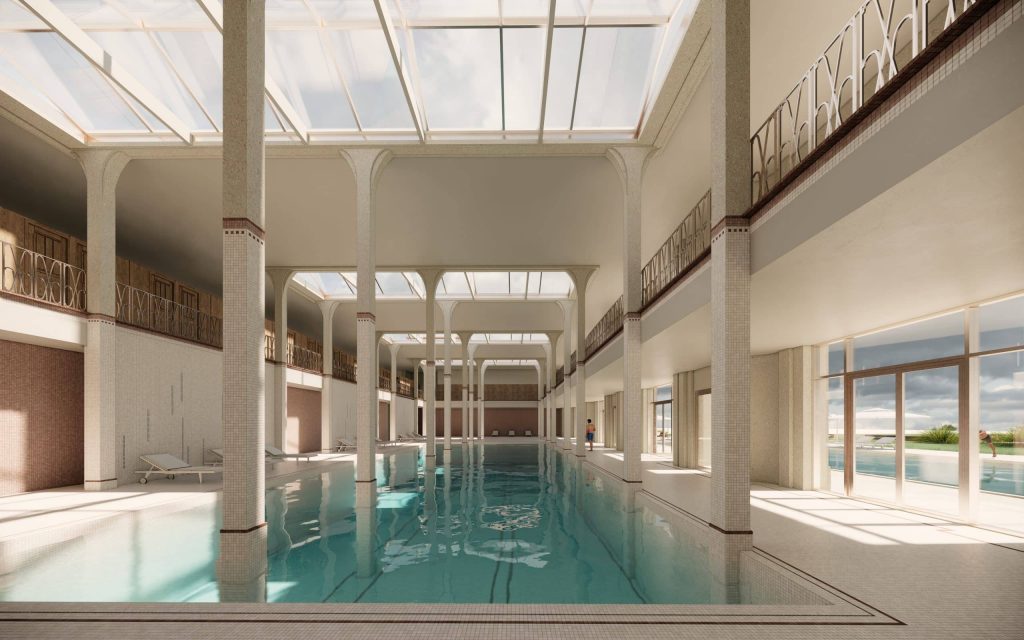 Le projet des Dômes prévoit la requalification et la mise en valeur de l’aile septentrionale du bâtiment par le développement de nouvelles offres de soins axées sur le bien-être, la santé et les loisirs et notamment la création de deux bassins thermoludiques.