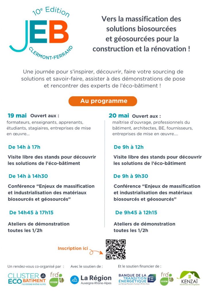 Le cluster Eco-Bâtiment et le FRD-CODEM co-organisent la 10ème édition de la Journée de l’Eco-Bâtiment « vers la massification des solutions biosourcées et géosourcées pour la construction et la rénovation » les 19 et 20 mai 2025.