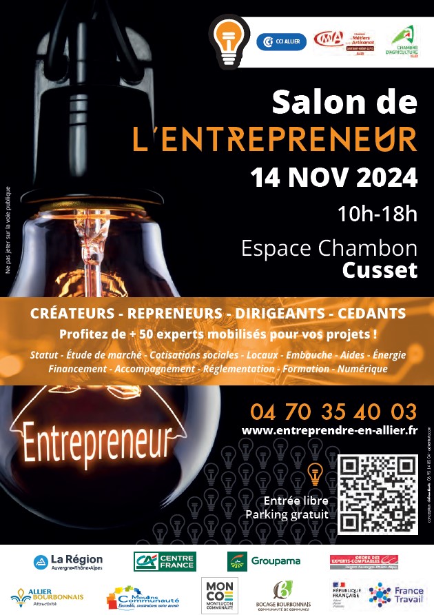 Créateur, repreneur, dirigeant d’entreprise, le 14 novembre 2024, à l’Espace Chambon à Cusset, venez rencontrer des experts de l’entrepreneuriat.