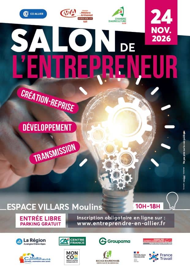 Le Salon de l’Entrepreneur de l’Allier revient le mardi 24 novembre 2026 à l’Espace Villars à Moulins.